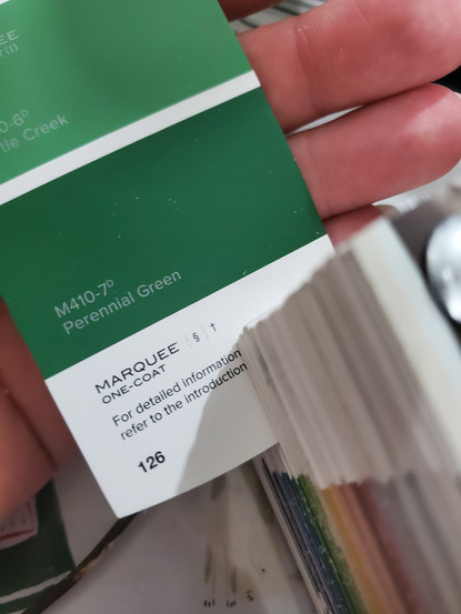 Behr Marquee, Eggshell, "Perennial Green" 1 gallon ~ $45 TRUST ME- PAINT IS NOT THE PLACE TO SKIMP. This paint includes primer, and a fancy ass pour spout comes with it.